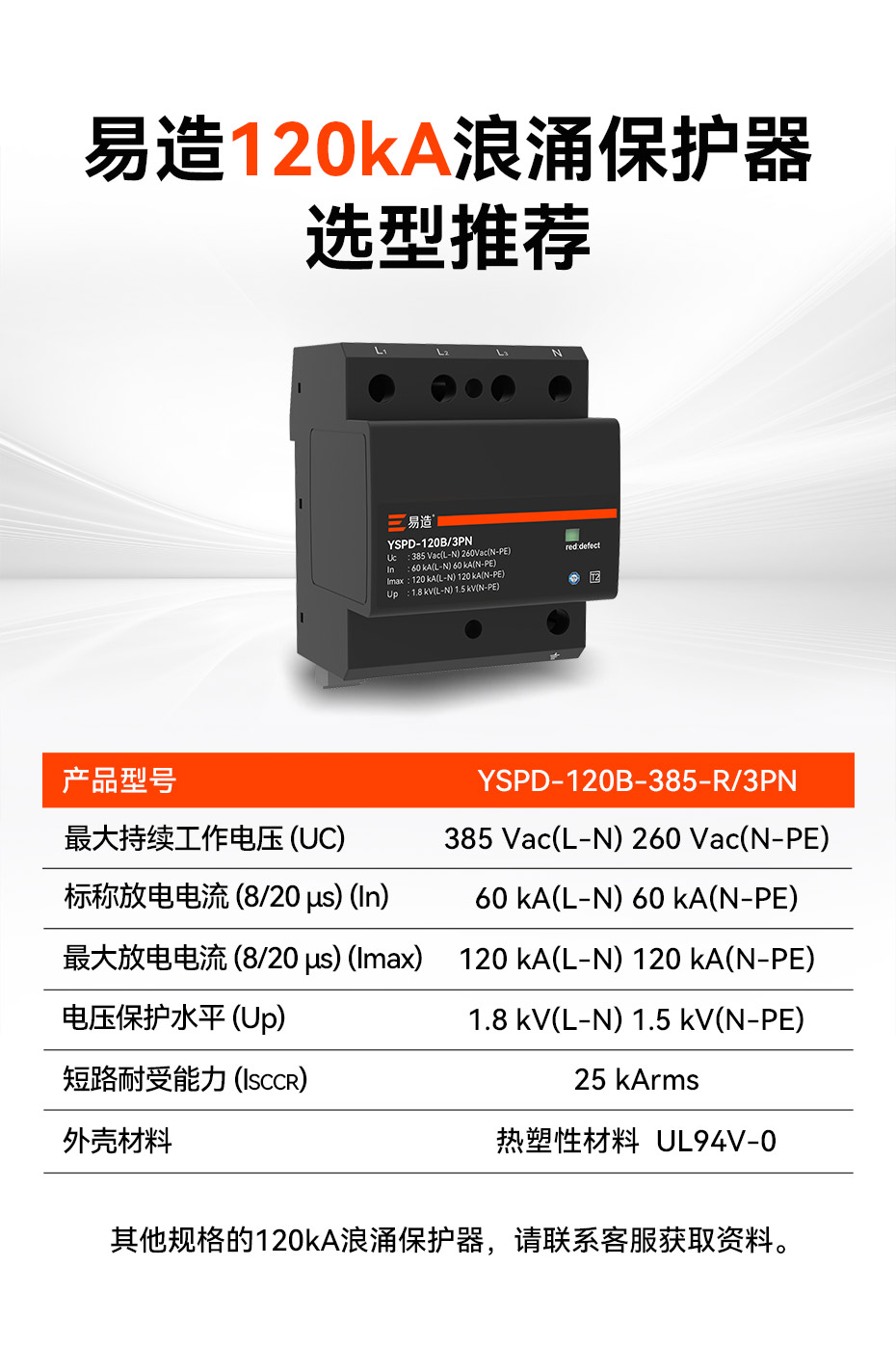 此文關鍵詞: 120kA二級防浪涌保護器