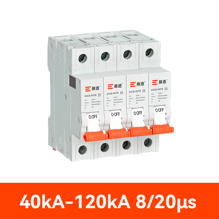 ESCB-80TB/40TC防雷后備浪涌保護器依據IEC和GB標準設計,采用主回路脫扣技術,通常用于保護Imax為80KA的浪涌保護器,可切斷100KA的短路電流,并且可在極短時間內切斷3A以上的低短路電流,具有高短路分斷,低短路瞬動,電涌耐受能力高,殘壓低,尺寸小,可監控等優點,廣泛運用于配電柜,配電箱,低壓柜上.