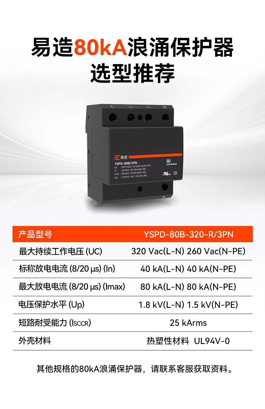 此文關(guān)鍵詞: 80kA二級(jí)電源浪涌保護(hù)器