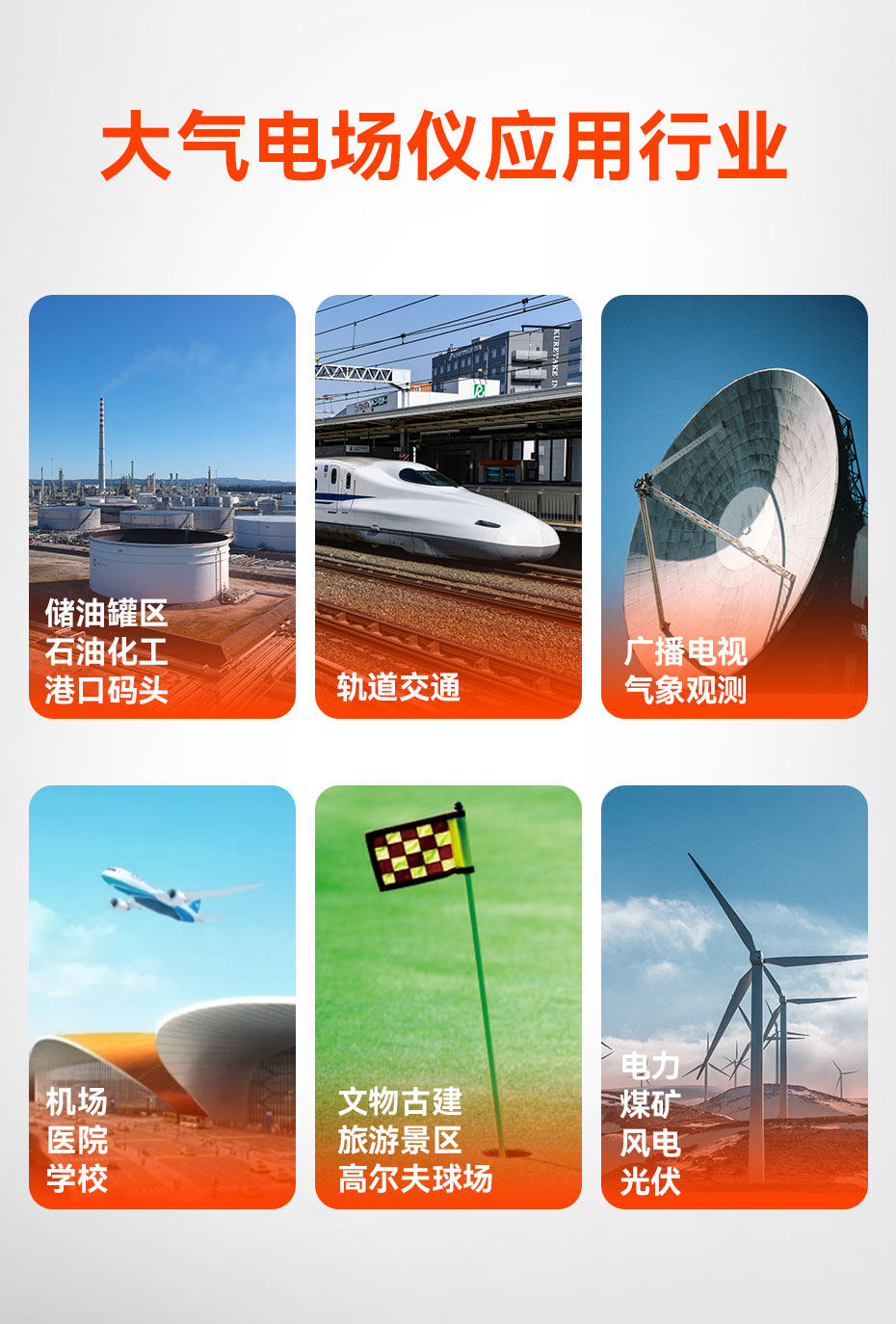 易造場磨式大氣電場儀廣泛應用于氣象、電力、石油化工、港口碼頭、軌道交通、機場、景區、高爾夫球場等相關行業,提供防雷暴災害事前預警,保障用戶生命財產安全。